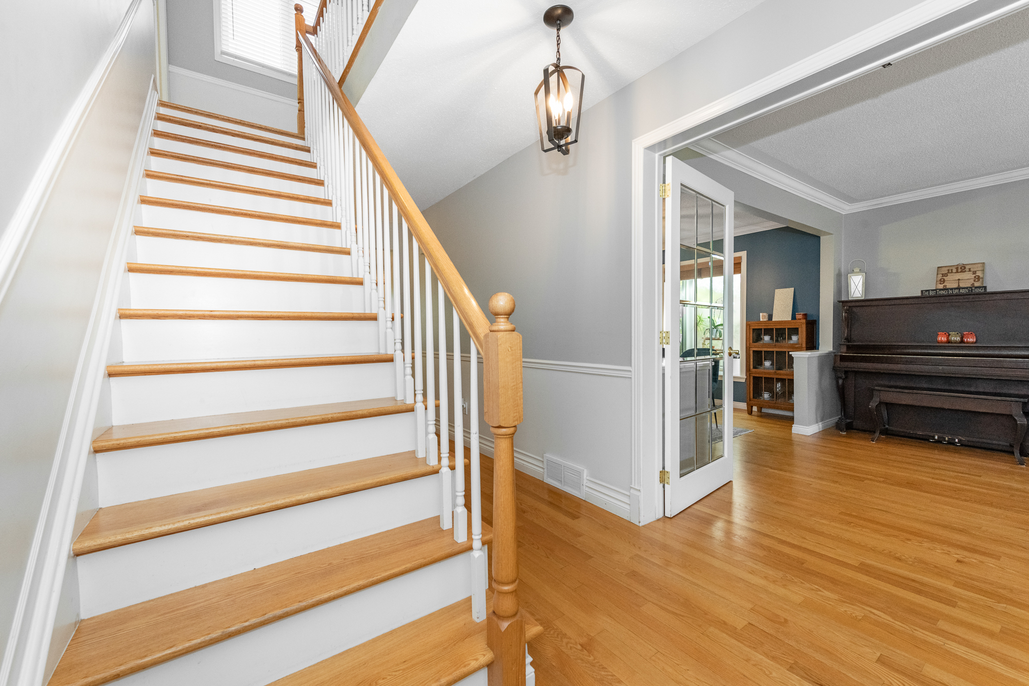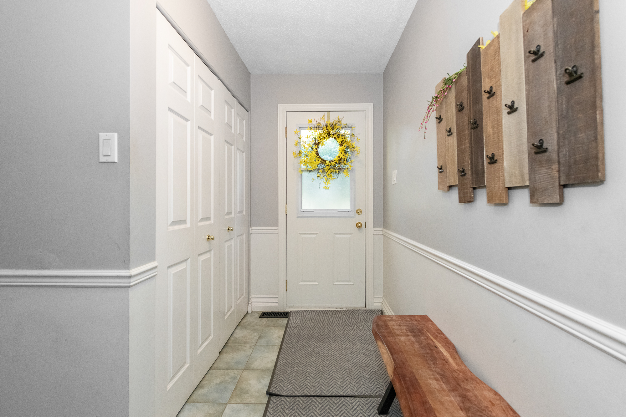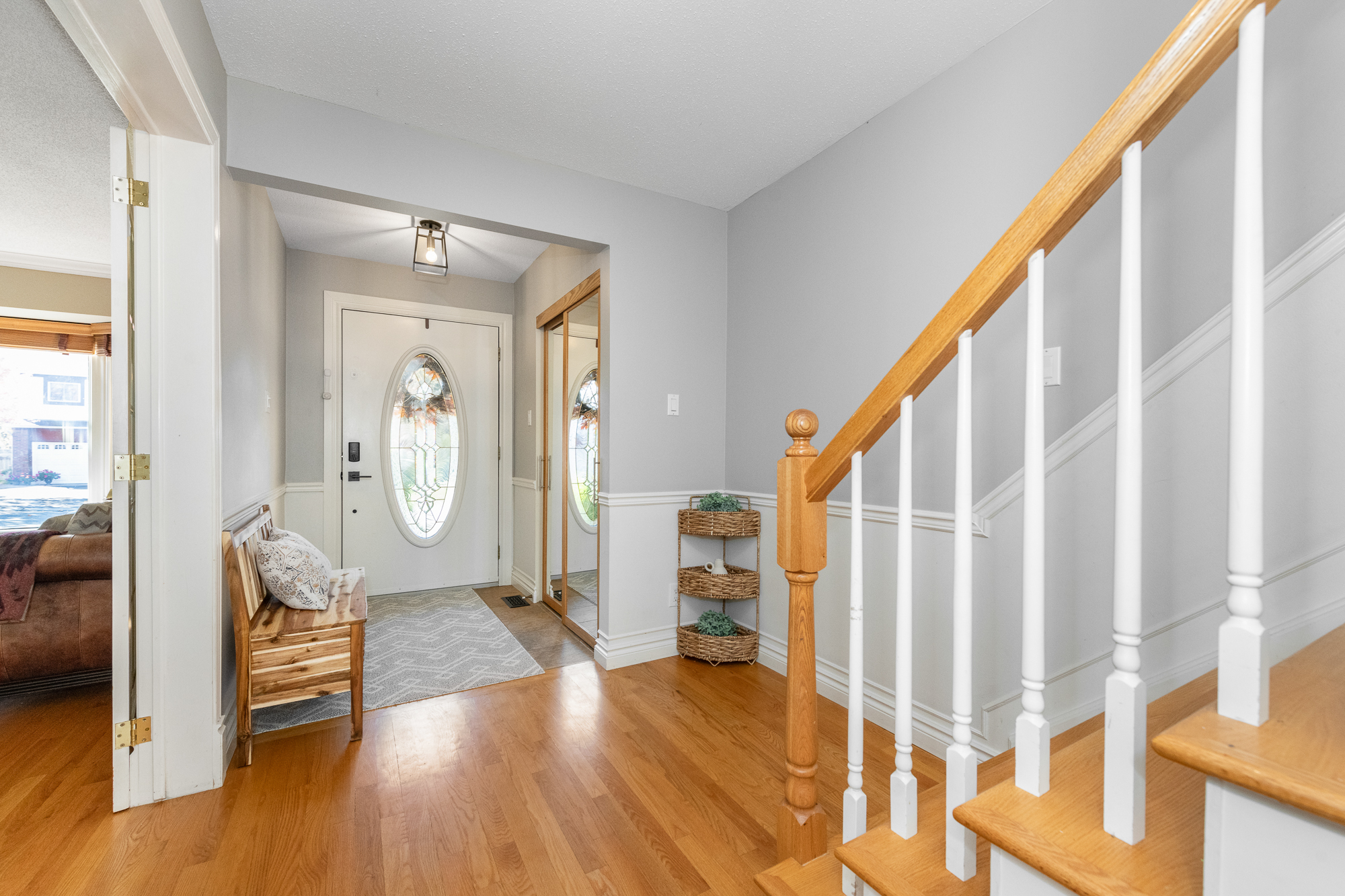 Attractive landscaping and interlock stone walkway enhance the curb appeal of this lovingly maintained home. Pride of ownership is evident as you step inside a bright front entry with tile floor and a double coat closet.